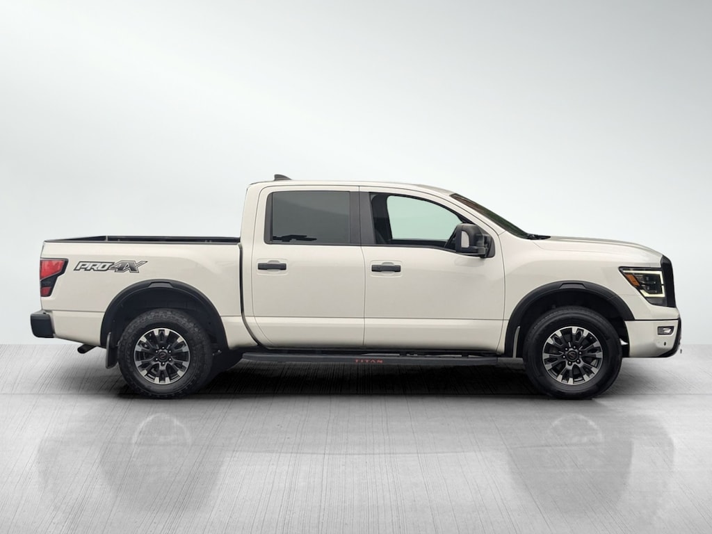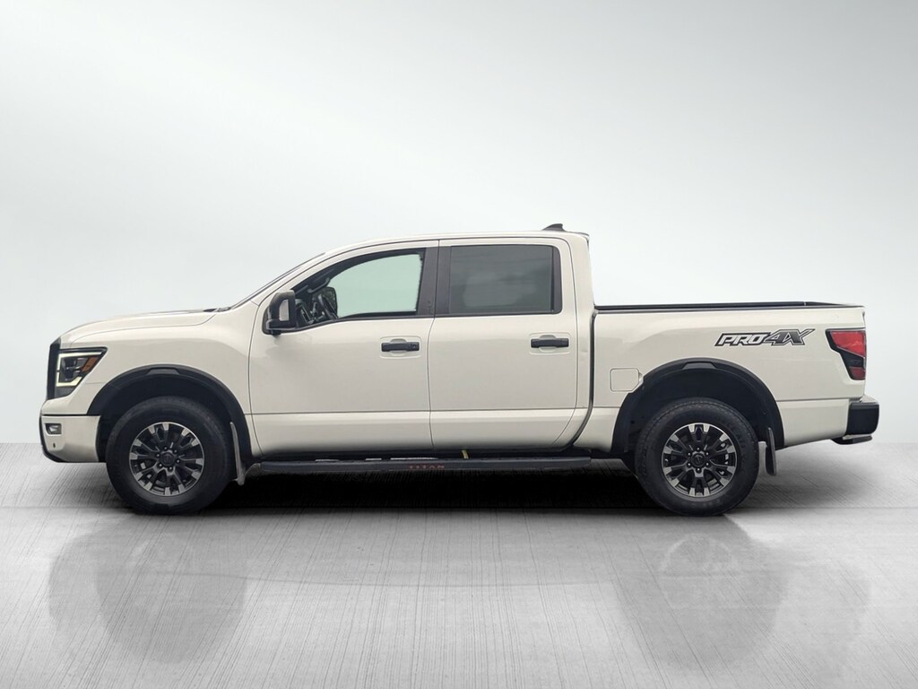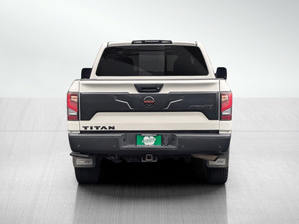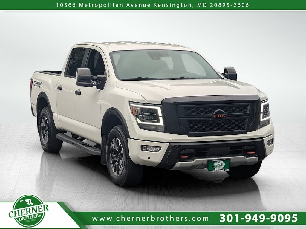Our great looking Maryland State Inspected 2022 Nissan Titan PRO-4X Crew Cab 4x4 is impressive in Glacier White. Powered by a 5.6 Liter Endurance V8 delivering 400hp paired with a 9 Speed Automatic Transmission, this Four Wheel Drive truck is engineered for strength and confidence on and off the road. Rugged features include Bilstein off-road shocks, skid plates, electronic locking rear differential, and 18 inch dark finished alloy wheels wrapped in all-terrain tires. A bold exterior design highlights black grille detailing, LED headlights with high beam assist, fog lamps, spray-in bed liner, rugged step boards, mud flaps, and tow hooks. Inside our Titan PRO-4X, you will find a well-appointed cabin with PRO-4X embroidered cloth seating with vinyl bolsters, heated front captain chairs, a power driver seat with lumbar support, and a 60/40 folding rear bench. Convenience is enhanced with remote keyless entry, push button start, dual zone automatic climate control, HomeLink garage door transmitter, illuminated kick plates, and rear under-seat locking storage. Technology is at your fingertips with a 9 inch NissanConnect touchscreen with navigation, Apple CarPlay, Android Auto, Bluetooth, SiriusXM, WiFi hotspot, HD Radio, and a six speaker audio system. Safety comes standard with Nissan Safety Shield 360 including Automatic Emergency Braking, Rear Automatic Braking, Blind Spot Warning, Lane Departure Warning, Rear Cross Traffic Alert, and a RearView Monitor. Additional confidence comes from advanced airbags, stability and traction control, and trailer sway control. With a maximum towing capacity supported by a Class IV hitch, trailer wiring harness, and Tow Mirrors, this Titan PRO-4X is ready for both work and play. Save this Page and Call for Availability. We Know You Will Enjoy Your Test Drive Towards Ownership.