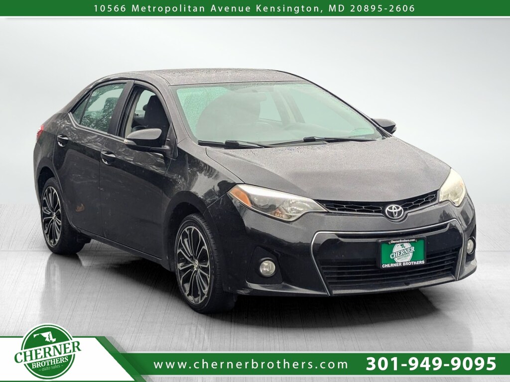 Our stunning Maryland State Inspected 2014 Toyota Corolla S stands out in Black Sand Mica with a perfect balance of efficiency, performance, and sporty style. Powered by a 1.8 Liter 4 Cylinder engine producing 132hp paired with a CVT automatic transmission featuring Sport Drive Mode and paddle shifters, this Corolla delivers smooth, responsive performance and up to 37mpg on the highway. From the outside, the Corolla S Plus makes a bold impression with its aggressive styling, 17 inch alloy wheels, rear deck spoiler, integrated fog lights, LED daytime running lights, and color keyed heated mirrors. The sleek lines and premium details give this sedan a confident, athletic appearance. Step inside the refined cabin and you will be welcomed by a driver focused interior featuring SofTex bolstered sport seats, a leather wrapped steering wheel with mounted controls, automatic climate control, and a power tilt and slide moonroof. Technology includes a 6.1 inch Entune touchscreen display, Bluetooth hands free phone and audio streaming, USB and AUX inputs, a backup camera, and cruise control for everyday comfort and convenience. Toyotas reputation for safety shines through with the Star Safety System, which includes Vehicle Stability Control, Traction Control, ABS with Electronic Brakeforce Distribution, Brake Assist, and Smart Stop Technology. Eight airbags, including front seat mounted side and side curtain airbags, provide exceptional protection for you and your passengers. Whether you are commuting through Kensington, heading out on a road trip, or simply enjoying the open road, this low mileage Corolla S Plus delivers reliability, comfort, and sporty efficiency in one stylish package. Save this Page and Call for Availability. We Know You Will Enjoy Your Test Drive Towards Ownership!