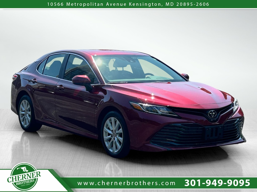Our great looking Clean Carfax, Maryland State Inspected 2019 Toyota Camry LE Sedan is stylish and refined in Ruby flare Pearl! Powered by a fuel-efficient 2.5 Liter 4 Cylinder that delivers 203hp while paired with a smooth-shifting 8 Speed Automatic transmission. This Front Wheel Drive combination offers composed handling, brisk acceleration, and an impressive efficiency of nearly 39mpg on the highway, making it a practical and fun choice for your everyday drive. The bold exterior of our Camry LE is enhanced by sleek body lines, a stylish front grille, LED headlights, and a set of eye-catching alloy wheels. Step inside the refined cabin to enjoy thoughtful features including keyless entry, power-adjustable front seats, dual-zone automatic climate control, a tilt-and-telescoping steering wheel, and split-folding rear seats for added versatility. Stay connected and entertained with Toyota Entune 3.0 Audio system featuring a 7-inch touchscreen, Bluetooth, USB, Apple CarPlay compatibility, and a six-speaker sound system. Toyota places a high priority on your safety, so this Camry LE includes Toyota Safety Sense-P with advanced features such as adaptive cruise control, a pre-collision system with pedestrian detection, lane departure warning with steering assist, and a rearview camera. Also included are ABS, stability/traction control, and a full complement of airbags. Sleek, sporty, efficient, and loaded with features, this Camry is ready to exceed your expectations! Save this Page and Call for Availability. We Know You Will Enjoy Your Test Drive Towards Ownership!