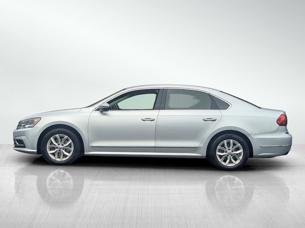 Our great looking Maryland State Inspected 2017 Volkswagen Passat 1.8T S in Reflex Silver Metallic delivers refined comfort, impressive efficiency, and timeless European styling. Powered by a responsive 1.8 liter turbocharged 4 cylinder engine paired with a smooth automatic transmission, this Front Wheel Drive sedan offers confident performance while achieving up to 34 highway MPG, making it an excellent choice for commuting and everyday driving. The sleek exterior design is highlighted by 16 inch Carolina alloy wheels, auto on off halogen daytime running headlamps with delay off, body colored bumpers and door handles, and a chrome accented grille that adds a sophisticated touch. Perimeter approach lighting, convenient rear trunk cargo access, and a compact spare tire enhance practicality while maintaining the Passat's clean and elegant appearance. Inside, the Moonrock Gray cloth interior offers a spacious and thoughtfully designed cabin. Enjoy manually adjustable front bucket seats with driver lumbar support and a 60 40 split folding rear seat for added cargo flexibility. Dual zone automatic climate control keeps passengers comfortable, while cruise control with steering wheel mounted controls, a manual tilt and telescoping steering column, power cargo access, and multiple 12 volt power outlets provide everyday convenience. Safety is well equipped with a rear view camera, Front Assist with autonomous emergency braking, and forward collision mitigation technology. Additional protection includes dual stage front airbags, seat mounted side airbags, curtain airbags for both rows, and rear child safety locks. Four wheel disc brakes with ABS, brake assist, and hill hold control further enhance confidence behind the wheel. With its comfortable ride, strong fuel efficiency, and trusted Volkswagen engineering, this Passat 1.8T S is a well rounded sedan designed to make daily driving both comfortable and efficient.